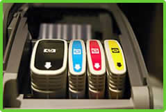 Una impresora de inyección de tinta tiene una cabeza de impresión tipo boquilla que esparce tinta en el papel para formar caracteres e imágenes. Son la tecnología de impresión más popular en la actualidad; producen impresiones a color o blanco y negro a bajo costo. La cabeza de impresión en una impresora a color está integrada por una serie de boquillas, cada una con su propio cartucho de tinta. La mayoría de las impresoras de inyección de tinta usan color CMYK, que requiere sólo tintas cyan (azul), magenta (rosa), yellow (amarillo) y black (negro) para crear una impresión que parece tener miles de colores. Como alternativa, algunas impresoras usan seis colores de tinta para imprimir medios tonos, que crean imágenes fotográficas ligeramente más realistas.