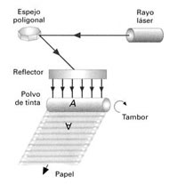 El papel a imprimir se carga positivamente en su totalidad. Por tanto, al hacerlo pasar por el tambor, atraerá a las partículas de tóner (que tienen carga negativa), y la imagen quedará finalmente formada sobre papel. Finalmente, el tóner adherido al papel se funde mediante la aplicación de calor, haciendo que quede totalmente fijado al papel. Se consigue así imprimir una página en una sola pasada, al contrario que en las impresoras de inyección de tinta, donde la página se imprime línea a línea. Antes de imprimir una nueva página, se realiza un borrado electrostático del tambor, dejándolo preparado para un nuevo ciclo.