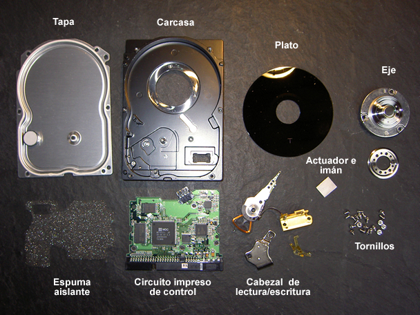 Componentes físicos de un disco duro: