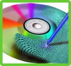 | Es la masa del disco, lo que se suele llamar 'el plástico'. Se trata de una pasta hecha con un material de carbono muy similar a los polivinilos y otros materiales plásticos que se utilizan en la industria de los tubos y conducciones. El policarbonato se ablanda a elevadas temperaturas y es rígido a temperatura ambiente. | El policarbonato, además de ofrecer la necesaria rigidez al disco óptico, soporta en su seno un tinte fotosensible, que es el segundo componente, y el más importante, de los CD y DVD. La mezcla del policarbonato y el tinte produce una pasta de color verde azulado. Este color, que es el que se ve en la cara no impresa de muchos discos ópticos grabables, se debe al tinte fotosensible. |