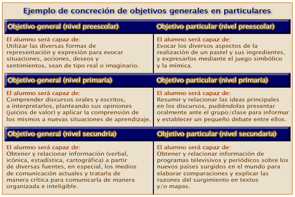 de objetivos generales en particulares en diferentes niveles de enseñanza",