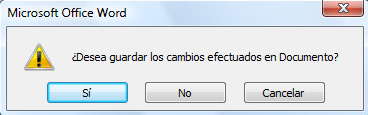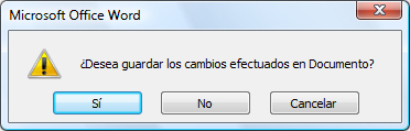 - Si el documento ha sufrido modificaciones, aparecerá un cuadro de diálogo preguntando si se quieren guardar los cambios. Seleccione la opción deseada.