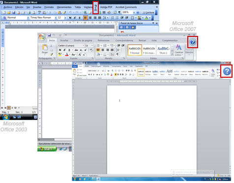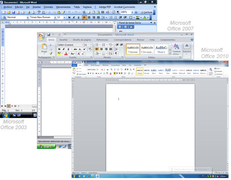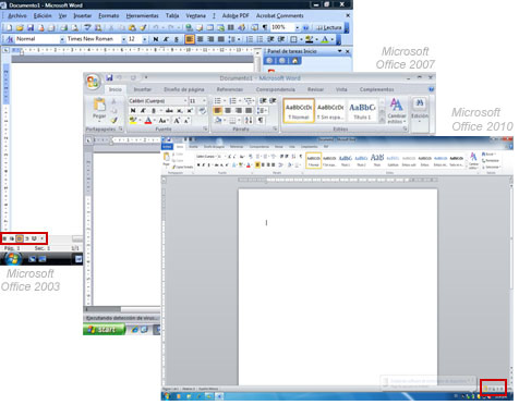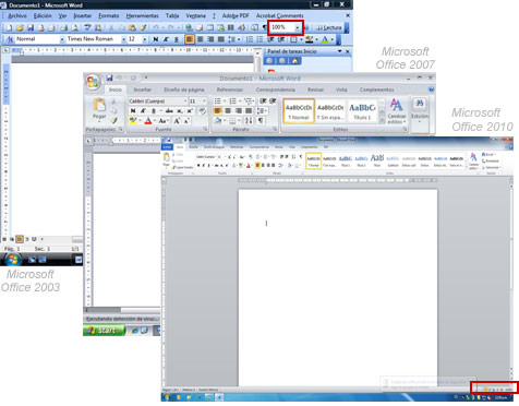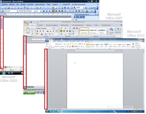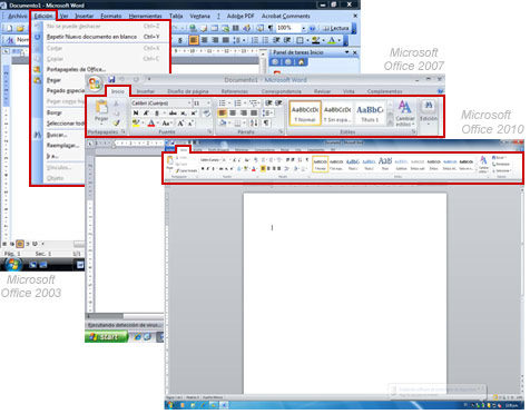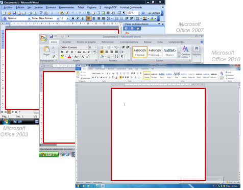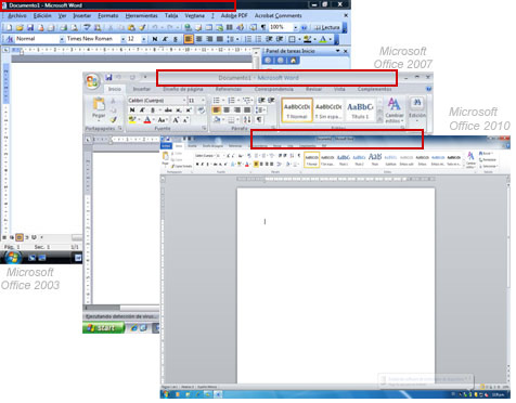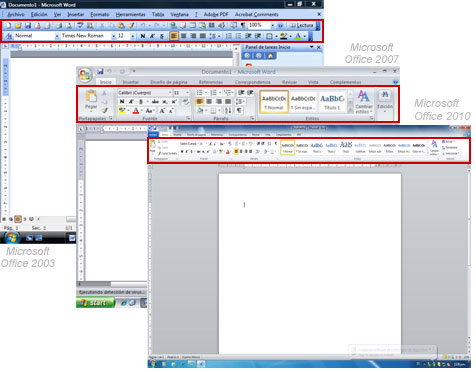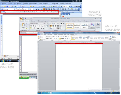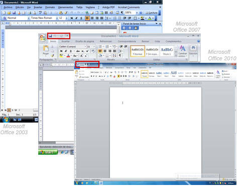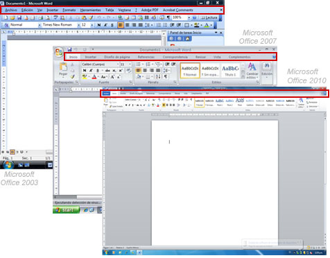 Menús y fichas: En ambas versiones de Windows vienen los menús, pero están organizados de diferente forma. En Office 2007 y 2010 reciben el nombre de fichas. Esta es una parte muy importante de la aplicación.