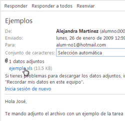 En ocasiones recibirá mensajes que tienen adjunto un archivo o documento electrónico. Para abrir dicho documento siga este procedimiento: