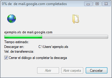 Guardar el archivo (Save): el archivo se guarda en la carpeta que usted desee. Usted irá viendo la velocidad en que se va guardando y al finalizar podrá abrir el archivo, ir a la carpeta donde lo guardó o cerrar la caja de diálogo.