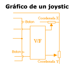 - Analógicos. Para la construcción de uno analógico se necesitan dos potenciómetros, uno para la dirección X y otro para la dirección Y, que dependiendo de la posición de la palanca de control producen un cambio en la tensión a controlar. Contienen además un convertidor tensión / frecuencia que proporciona los pulsos que se mandan por el puerto según la señal analógica de los potenciómetros. Dé clic en la siguiente liga para ver ejemplos.