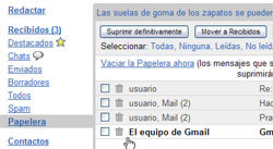 Eliminar un mensaje de correo equivale a deshacernos de los papeles que no nos sirven; los sacamos de nuestro buzón, los ponemos en un cesto de basura y cuando se llena, vaciamos el cesto.