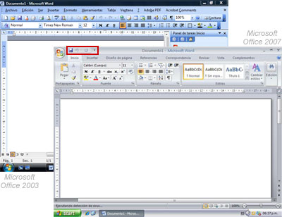 Herramientas de acceso rápido: Contiene las operaciones de uso frecuente en la aplicación. Esta es una de las diferencias del Office 2007, más adelante lo veremos. |