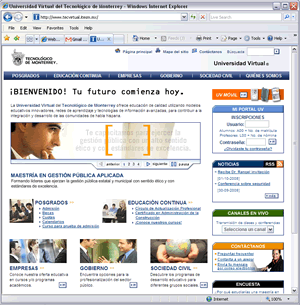 - Abrir una página de Internet y teclear la siguiente dirección http://tecvirtual.itesm.mx/ y presionar la tecla Enter. Aparecerá la siguiente pantalla: