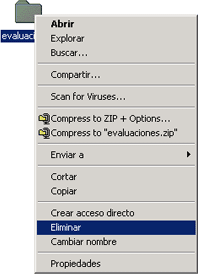 carpeta que se desea eliminar dando un clic sobre