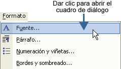 | Barra de menú Formato, comando Fuente |