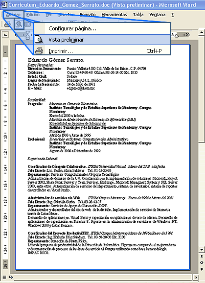 Aparecerá una ventana en donde se muestra nuestro documento como si estuviera impreso. |