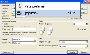 Seleccionar el comando para mandar imprimir. Para ello tenemos tres opciones: