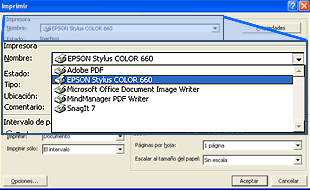 Seleccionar la impresora a la cual se desea mandar a imprimir. |
