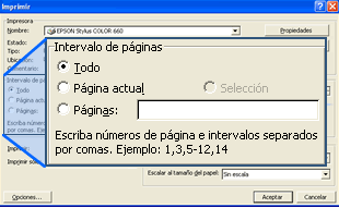 Página actual: Sólo se imprime la página que se está mostrando en pantalla en ese momento.