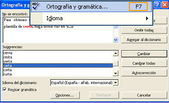 - Seleccionar del menú "Herramientas" la opción de Ortografía y gramática"