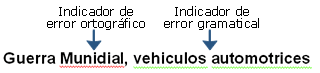 Nota : Se hará lo mismo para los errores gramaticales, recordemos que estos errores se marcan en color verde. |