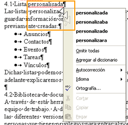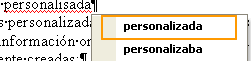 Presionar el botón derecho del ratón sobre la palabra y aparecerá un menú con las posibles opciones para corregir la palabra. |