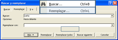 Seleccionar del menú "Edición" la opción de "Reemplazar"