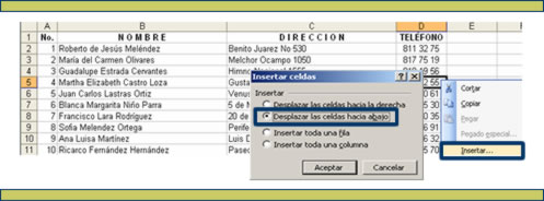 Aparecerá un cuadro de dialogo que permitirá mostrar cual de las opciones después de que se inserte la celda desea que se realicen para no perder la relación correcta de la información. |