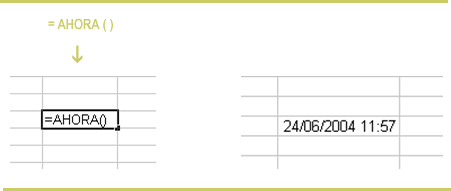 El objetivo de esta función es el de colocar la hora y fecha del reloj de la computadora en la celda que tengamos seleccionada; en esta función no hay argumentos. |