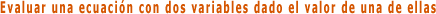 Evaluar una ecuación con dos variables dado el valor de una de ellas