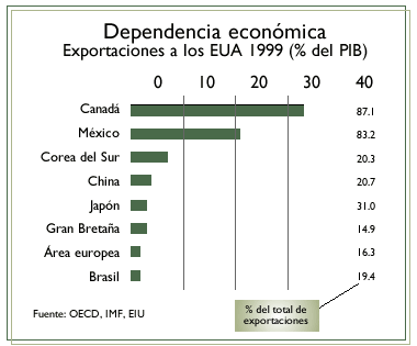 He aquí la reflexión que debemos hacer al comprender cómo las economías de Canadá y México se ven afectadas cuando a Estados Unidos le va mal en su economía. De esta forma confirmamos la dependencia tan intensa que existe entre los países en una economía globalizada |
