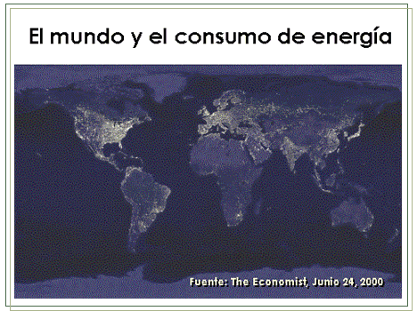 Para ejemplificar lo anterior y lo que se puede analizar consideremos la siguiente imagen que muestra al mundo de noche y se observa a los países con mayor consumo de energía. Si se compara esta imagen con la del apartado anterior, existe una correlación entre los países que consumen energía y los países que innovan, pues son prácticamente los mismos.