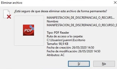 - Enseguida aparecerá un cuadro de confirmación para borrar el archivo.