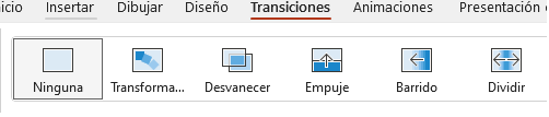 En este tema aprenderemos los dos tipos de animaciones. Para empezar, veamos la transición entre diapositivas.