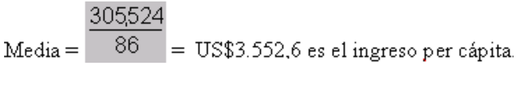 Para calcular el ingreso medio o ingreso per cápita, se suma el PNB de los cinco países del cuadro y se divide el total por la suma total de las poblaciones de estos cinco países. Sin embargo, los datos proporcionados no son el ingreso total (PNB), sino el ingreso per cápita. No se puede sumar el ingreso per cápita para obtener un ingreso promedio regional, porque cada país tiene una población diferente. Polonia, por ejemplo, tiene por sí misma una población total casi equivalente a la de los otros cuatro países juntos. Por este motivo, cada país debe tener una ‘ponderación’ distinta cuando se calcula el ingreso per cápita promedio regional. Por consiguiente, se aplica el método del promedio ponderado para calcular el ingreso promedio de los cinco países representados en el Cuadro 9.
