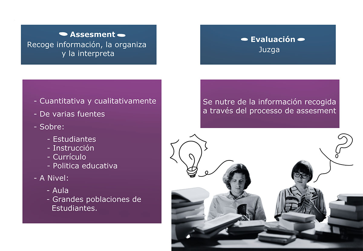 El término acopio (o assesment en inglés) ha sido diferenciado del de evaluación. Acopio se refiere a un proceso durante el cual se recoge y se organiza información—en este caso sobre el aprendizaje de un alumno—con el objetivo de que esa información sirva para facilitar la labor de juzgar o evaluar. La recopilación de información debe realizarse en diferentes contextos para poder obtener y describir las características o los atributos del sujeto del aprendizaje. Por lo tanto, durante el acopio se recopila la información para que durante la evaluación se lleve a cabo el juicio valorativo a partir de ella.