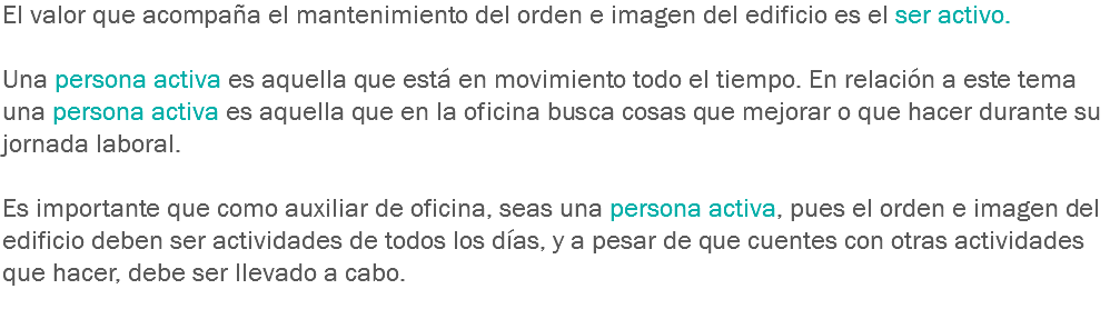 ¿Qué valor acompaña el mantener el orden e imagen del edificio?