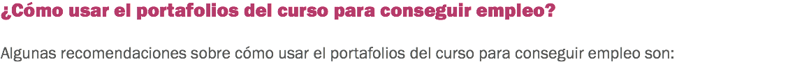 Recomendaciones Revisa a continuación algunas recomendaciones sobre cómo utilizar las evidencias de tu portafolio y cómo seguir desarrollando tus competencias.