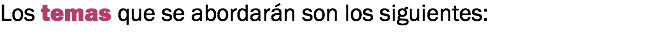 Temario ¿Qué temas estudiarás? Los temas que se abordarán son los siguientes: