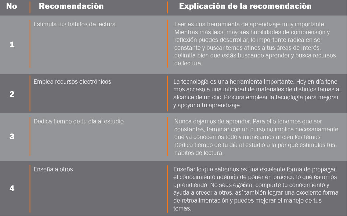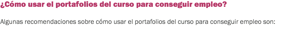 Recomendaciones Revisa a continuación algunas recomendaciones sobre cómo utilizar las evidencias de tu portafolio y cómo seguir desarrollando tus competencias.
