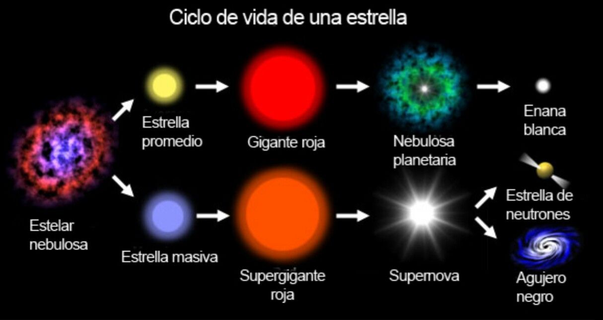 La vida de una estrella se puede ver en los siguientes pasos: