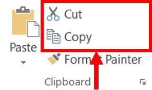 - Oprima las teclas CTRL + C para copiar o bien, CTRL + X para cortar. O si prefiere, puede ir a la barra de herramientas y oprimir los botones "copiar" (copy) y "cortar" (cut).