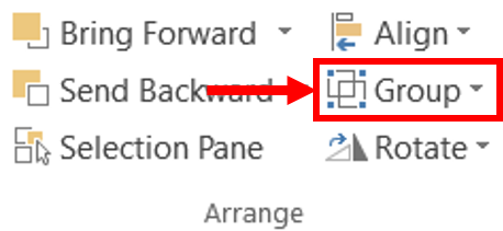 - Vaya al menú "Formato" (Format) de la barra de herramientas de "Dibujo" (Drawing Tools) y seleccione la opción "Agrupar" (Group).